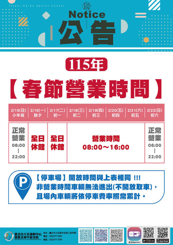 來源 : 臺北市大安運動中心