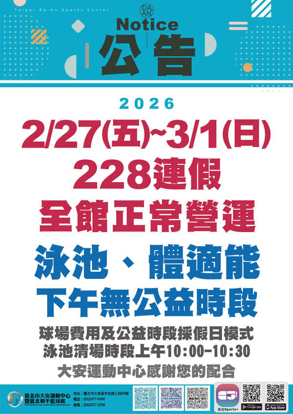 來源 : 臺北市大安運動中心