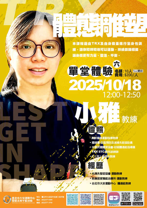 【臺北市大安運動中心】11 /12月份(114-6課程)登場!